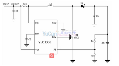 YB53300是一款工作于4V到28V的PFM升壓型電池充電控制集成電路.YB53300內(nèi)部集成有基準(zhǔn)電壓源,+5V電壓調(diào)制單元,電感電流檢測單元,電池電壓檢測電路和片外N溝道 MOSFET驅(qū)動電路等,具有外部元件少,電路簡單等優(yōu)點。